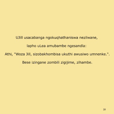 UJill usacabanga ngokuqhathaniswa nezilwane, lapho uLea amubambe ngesandla: Athi, "Woza Jill, sizobakhombisa ukuthi awusiwo umnenke.". Bese izingane zombili zigijime, zihambe.